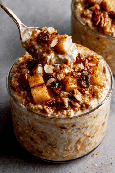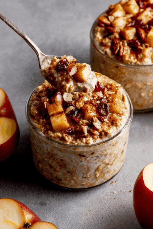 These overnight oats are filled with fresh apples, a touch of maple syrup, and warm cinnamon for that classic apple pie flavor. The best thing is that it is all made the night before.