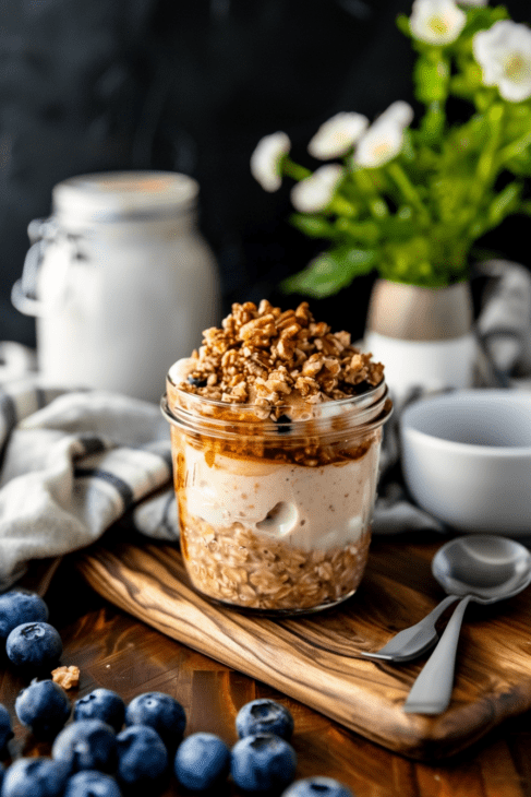 These Blueberry Overnight Oats are a delicious, nutritious, and effortless breakfast option. Made with creamy oats, Greek yogurt, sweet blueberries, and crunchy nuts, this make-ahead meal is perfect for busy mornings.