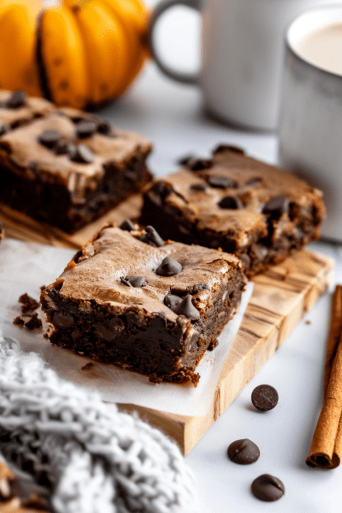 These fudgy pumpkin chocolate chip bars are the perfect mix of cozy flavors and rich chocolate, making them a must-have for any dessert table!