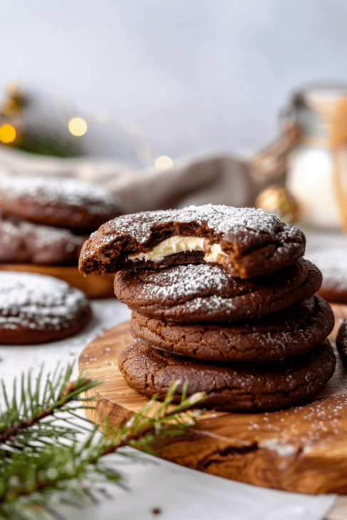 The cookies are soft, chewy, and perfectly spiced, while the surprise cheesecake center adds an indulgent, melt-in-your-mouth texture. Lightly dusted with powdered sugar, they are festive, flavorful, and perfect for the holiday season.