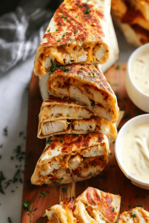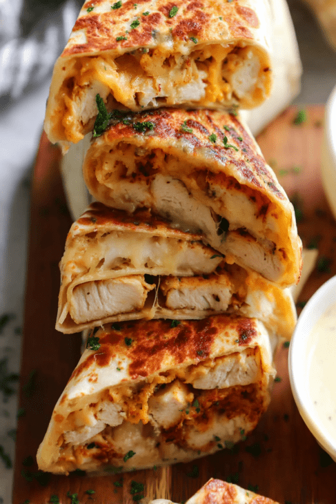 These Cheesy Garlic Chicken Wraps are the perfect comfort food—crispy on the outside, loaded with tender chicken, melty cheese, and a savory garlic sauce inside.