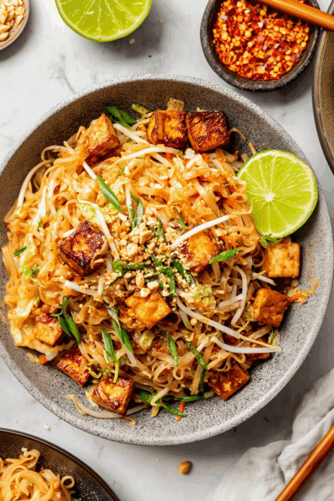 Tofu Pad Thai is a vibrant, plant-based take on the classic Thai stir-fried noodle dish.