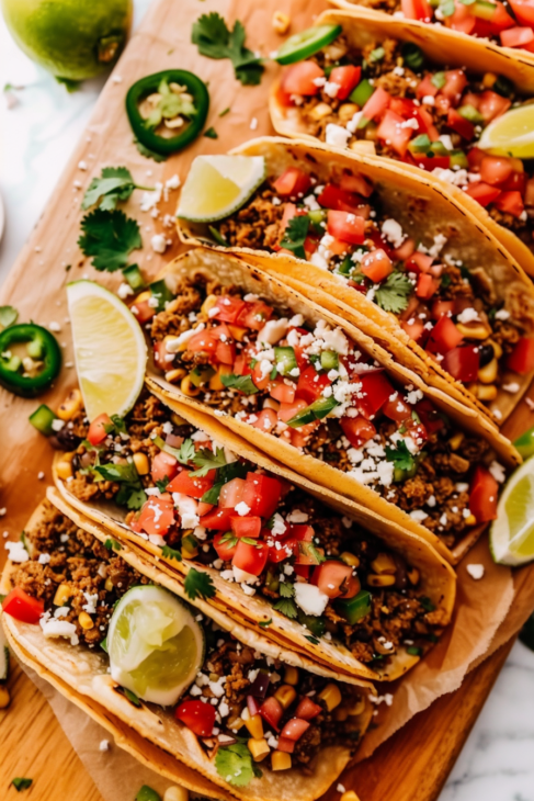 These delicious vegan tacos are packed with seasoned plant-based protein, fresh vegetables, and bold flavors. Whether you’re using lentils, mushrooms, tofu, or a store-bought meat alternative, these tacos are perfect for taco night and guaranteed to satisfy everyone at the table.
