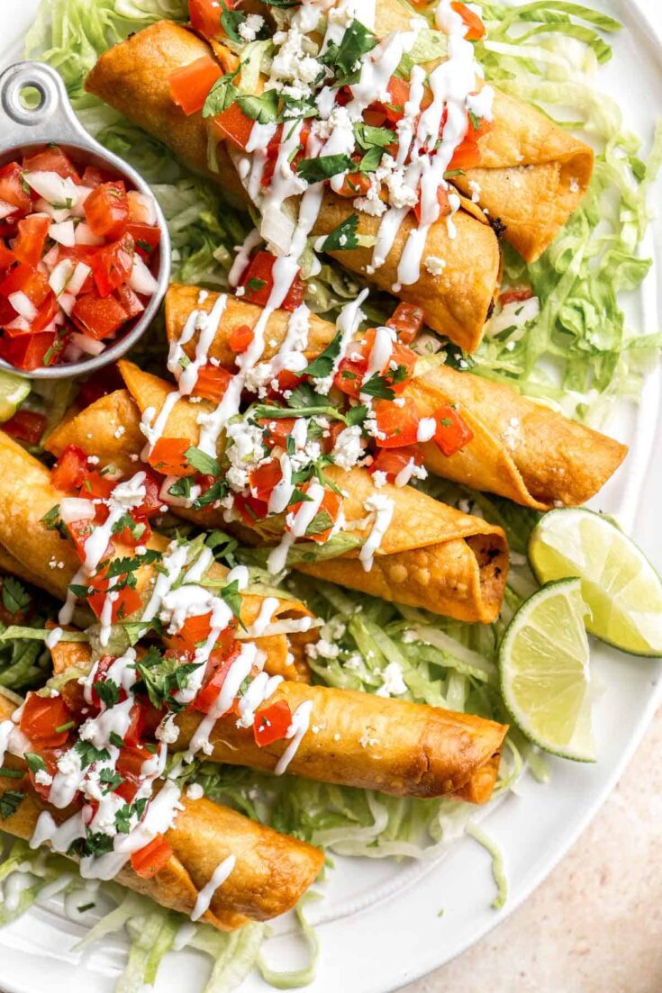 Crispy, golden, and stuffed with flavorful fillings, these homemade taquitos blow the frozen kind out of the water! Bake or fry them for a crunchy snack, party appetizer, or meal the whole family will love. Dip them in salsa, guac, or sour cream—either way, they’re totally irresistible.