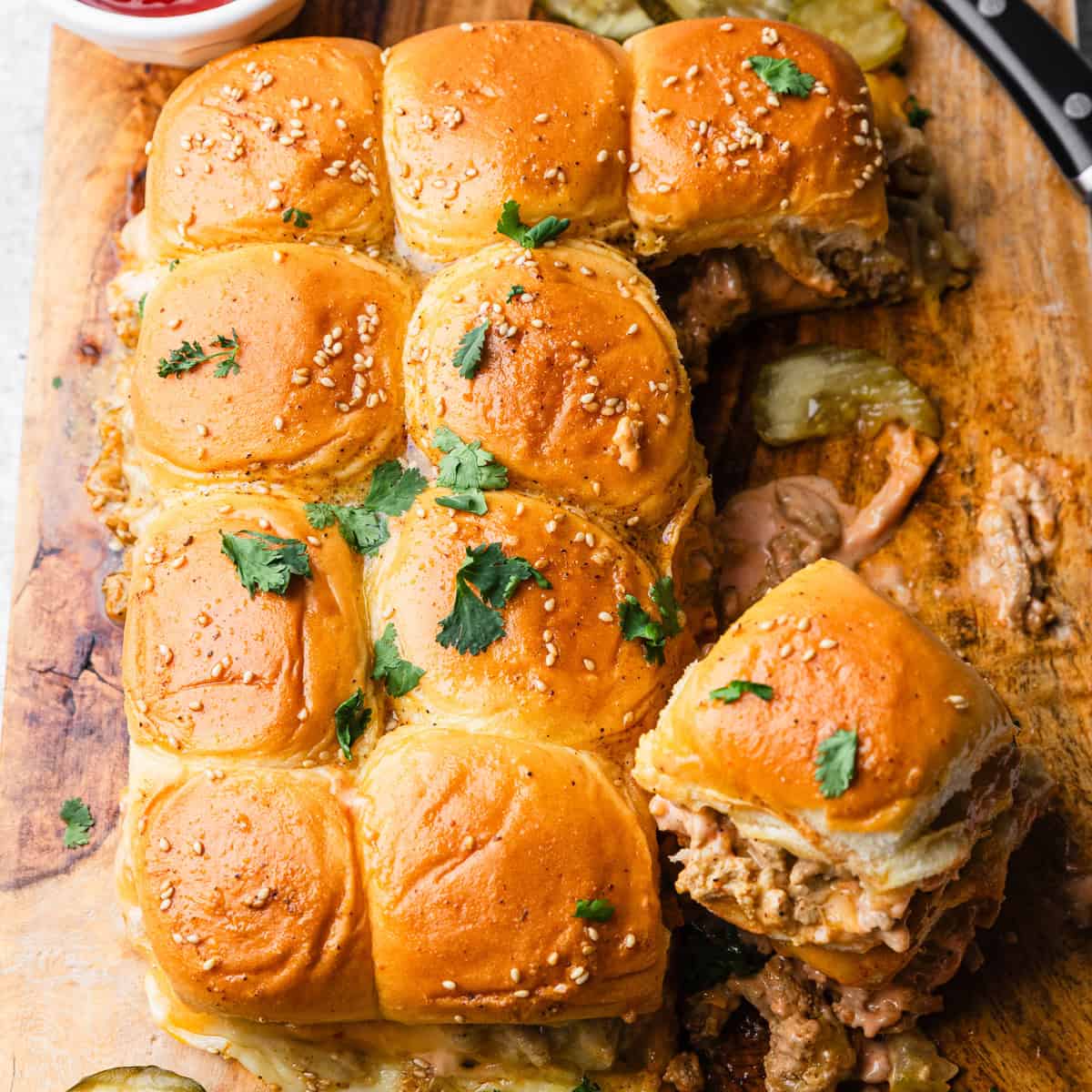 These French dip sliders are mini, meaty, and melt-in-your-mouth good! Stacked with tender roast beef, gooey cheese, and buttery rolls, they’re oven-baked to golden perfection. Served with savory au jus for dipping, they’re everything you love about the classic—now in party-ready slider form. Irresistible and insanely satisfying.