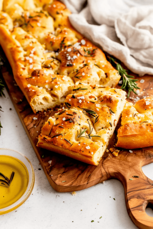 Focaccia is an incredibly light and airy Italian bread with a crisp golden crust and a rich olive oil flavor. Infused with rosemary and sprinkled with sea salt, this homemade focaccia is perfect as a side, for sandwiches, or even on its own with a dip in olive oil and balsamic vinegar.