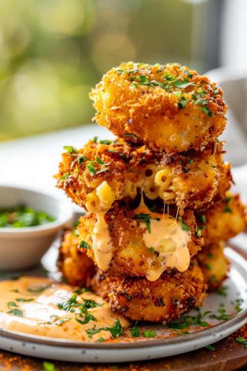 These crispy, golden-brown fried mac & cheese bites are the ultimate comfort food snack. With a crunchy coating and a creamy, cheesy center, they make the perfect appetizer for parties, game nights, or just a delicious indulgence.