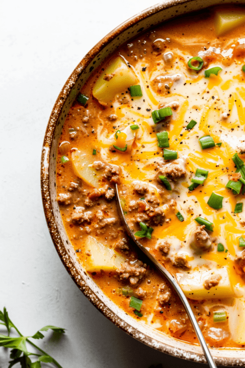 This Cheesy Hamburger Potato Soup is creamy, cheesy, and packed with flavor—perfect for cozy nights in. Enjoy!